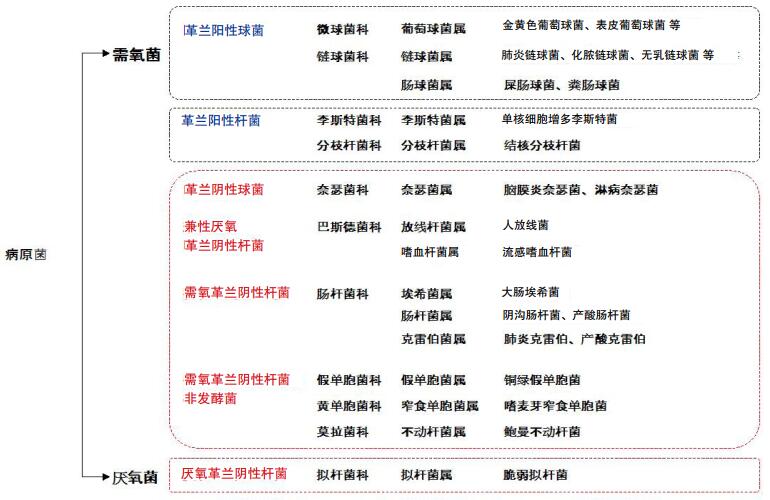 5 急诊常用抗菌药物的分类 5.1 目标细菌急诊临床医师选用抗菌药物时需要充分注意目标细菌,其中选择治疗革兰阳性菌重点需要关注所选药物能否覆盖:链球菌、金黄色葡萄球菌[凝固酶阴性/凝固酶阳性,甲氧西林敏感的金黄色葡萄球菌(methicillin sensitive Staphylococcus aureus,MSSA)/MRSA]。选择治疗革兰阴性菌时重点需要关注所选药物能否覆盖肠杆菌科细菌中的大肠埃希菌、肺炎克雷伯菌,假单胞科细菌中的铜绿假单胞菌,不动杆菌属中的鲍曼不动杆菌和厌氧菌中的脆弱拟杆菌。