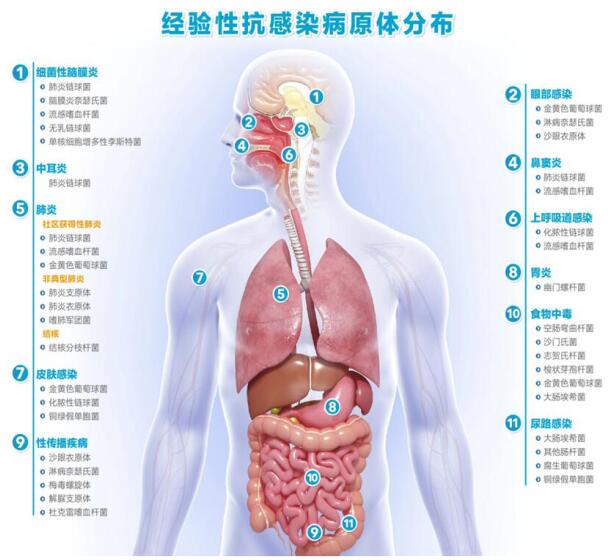 第三,需考虑感染部位及常见病原菌(infection Site,S)。经验性治疗前,需再次结合患者的病史、临床表现及感染部位对病原学进行推断。感染部位的判断将直接影响经验性抗菌药物应用的选择和剂量,经验性抗菌药物治疗时,需要充分考虑感染的部位和相应的病原菌。避免不加选择地应用广谱抗菌药物。同时应注意感染源的清除与引流。