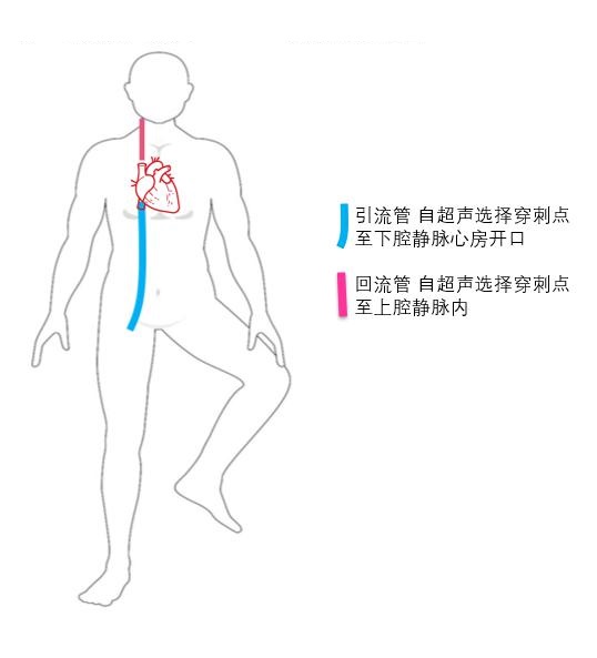 | 图 15 VV-ECMO引流管(蓝色)和回输管(红色)的距离 |