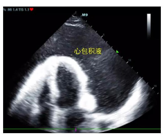 | 心包腔内可见无回声液性暗区 图 2 心包积液超声表现 |