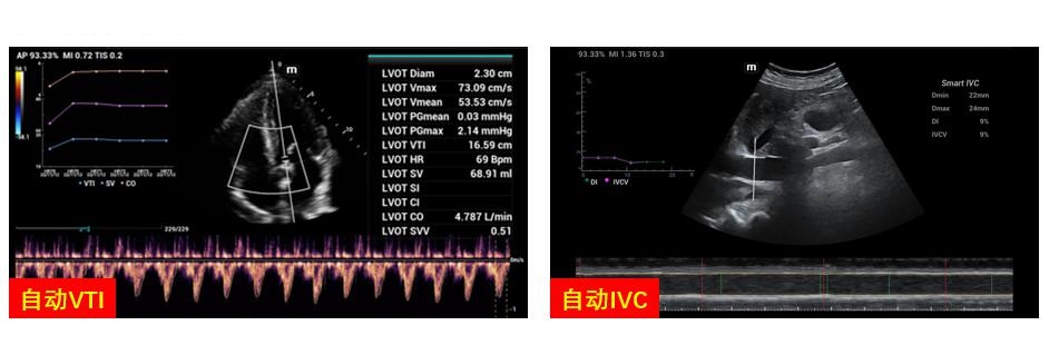 目前一些床旁超声设备内预设了多种自动测量技术和算法,如自动LVOT VTI变异率、自动IVC定量分析等(图 31),为临床快速获得数据提供了便利,需要强调的是准确的计算结果依赖于清晰的成像和标准的位置及角度设置校正,其适用人群需要个体化判断。