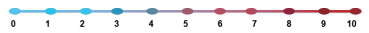 (1)交流正常患者使用疼痛数字评价量表(NRS)[22]:用0~10数字的刻度标示出不同程度的疼痛强度等级,0表示“无痛”,10表示“最剧烈的疼痛”(图 1)。由患者选择符合其疼痛感受的分值来量化疼痛程度,评分越高疼痛程度越重。临床评定以1~3分为“轻度疼痛”,4~5分为“中度疼痛”,6~7分为“重度疼痛”,8~10分为“极重度疼痛”。NRS具有快速、方便、可靠性高等特点。