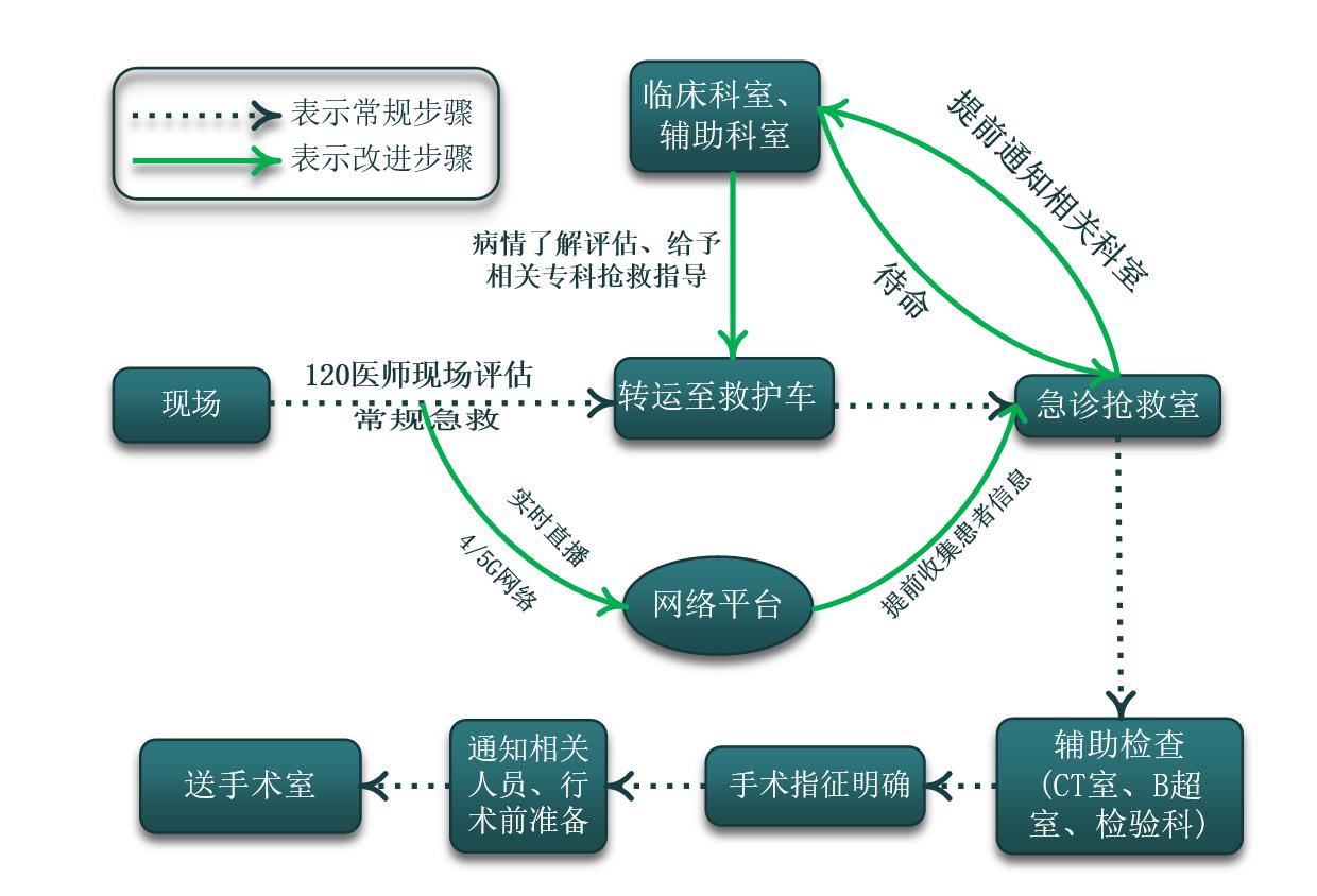 绝大多数的急救系统都强调应第一时间辨别患者病因,在现场医疗设施有限的情况下实行初步救援,并在院内治疗前做好病情的评估分析,尽快开展后续救治。目前我国的急诊救治过程中还存在者着急救呼救时间过长、院前救治不够准确有效、转运时间过长等问题[9-10],尤其在基层医院救治过程中,急救反应时间偏长、急救人员力量不足、急救设备落后、院前-院内和各科室间缺乏有效的联系等问题仍普遍存在,导致院前急救措施有限、医院不能及时获得患者的信息和做好急救准备。