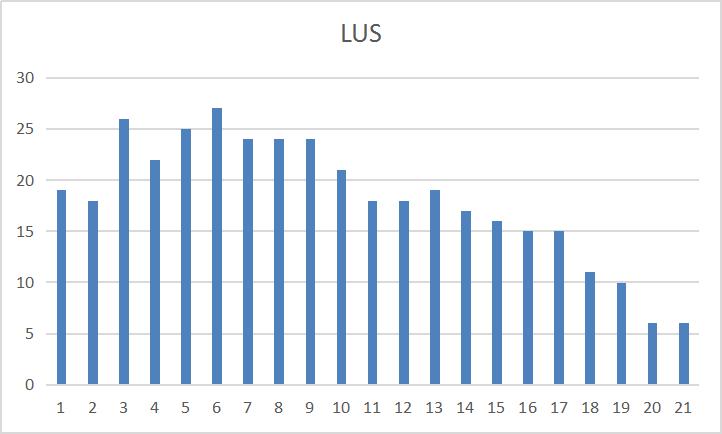 | 图 3 患者入院3周内每日肺部超声评分(LUS)变化 |