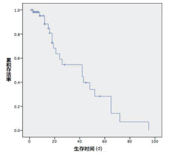 | 图 1 所有患者的Kaplan-Meier生存曲线 Fig 1 Kaplan-Meier survival curve of all the patients |