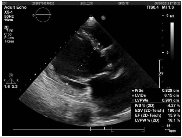 图 1 患者入院时心脏超声结果 |