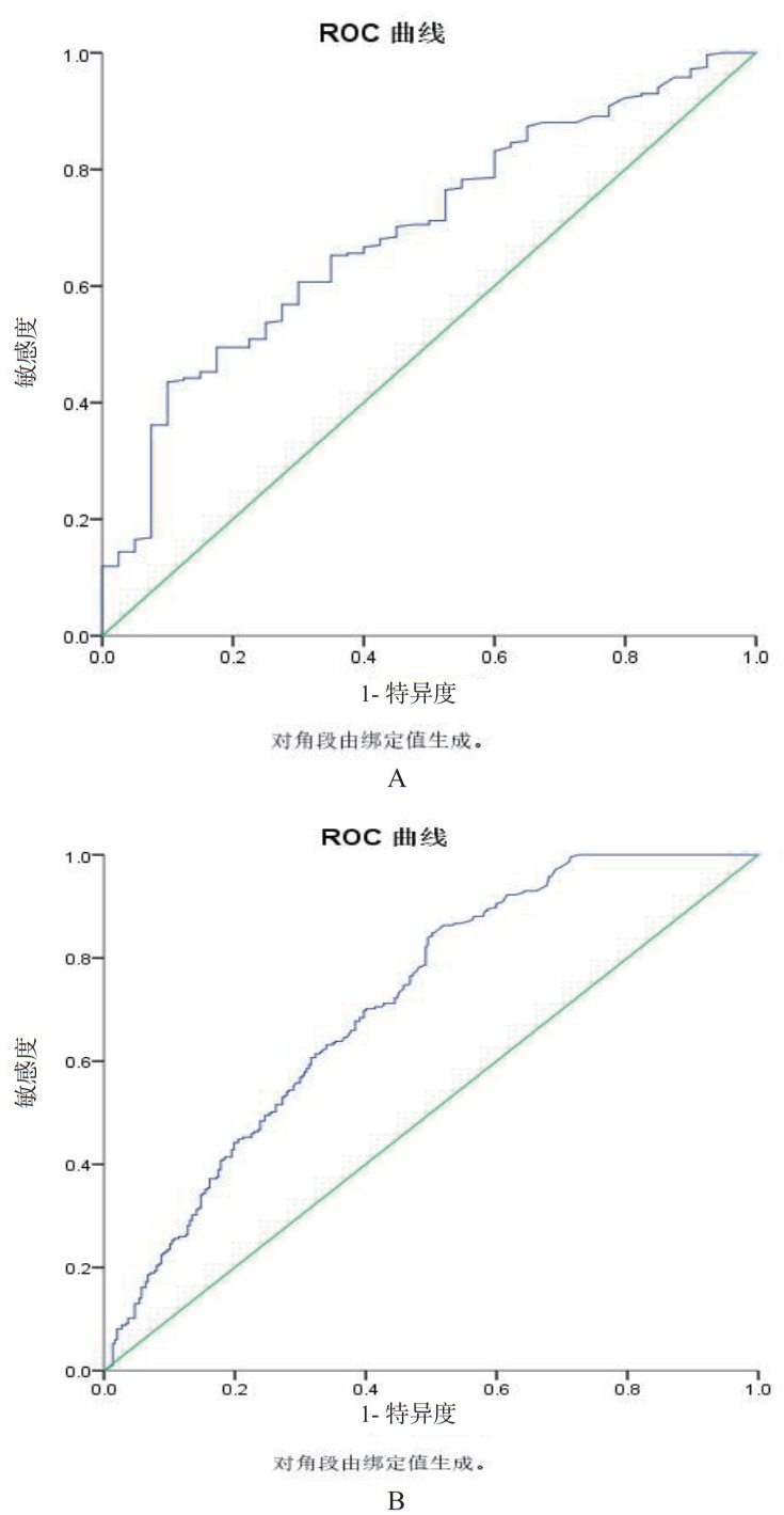 | PCT为降钙素原;GNB为革兰阴性菌;GPB为革兰阳性菌;ROC为受试者工作特征曲线 图 3 PCT诊断GNB菌血症与念珠菌血症(A)、GNB菌血症与GPB菌血症(B)的ROC曲线 Fig 3 ROC curve of PCT in differential diagnosis of bacteremia due to GNB infection and candidemia (A), bacteremia due to GNB and GPB infection (B) |