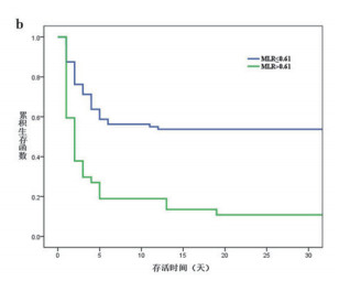 本研究探讨了入院时血MLR水平与急性PQ中毒患者病死率之间的关系,在本研究中,发现高MLR组患者的累计生存率明显低于其他较低MLR组,同时,基于最佳截断MLR值0.61分组的分析也发现了相同的趋势。此外,还发现在调整了相关危险因素后,MLR是急性PQ中毒患者全因病死率的一个重要的、独立的预测因子。