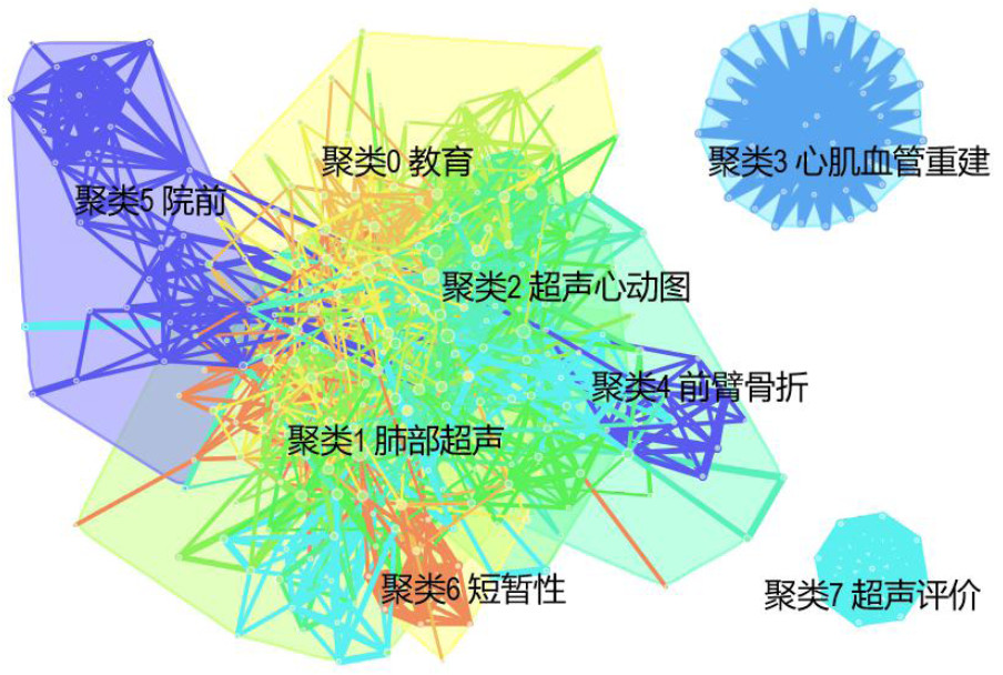 | 图 6 2010至2020年Web of Science中PoCUS研究领域文献共被引网络前8位大型聚类图 |