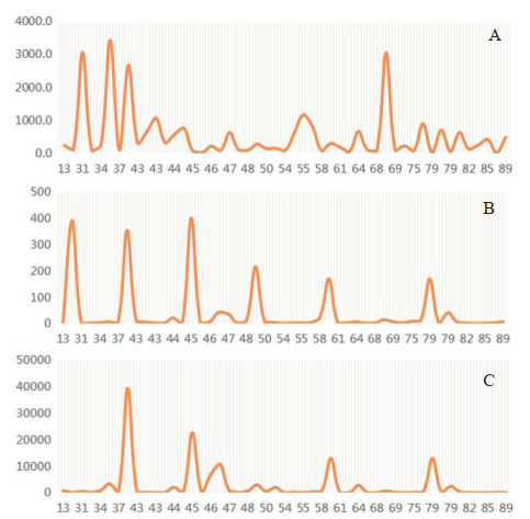 | 2A为CK-MB;2B为CK;2C为GDF1 图 2 CK-MB、CK及GDF15在SD人群众分布图。 Fig 2 Distribution of CK-MB, CK and GDF15 in SD. |