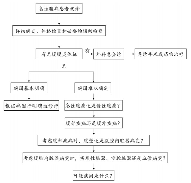 | 图 1 快速准确筛查急性腹痛病因的流程 |