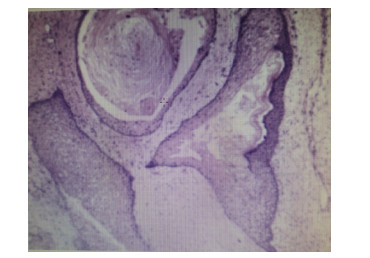 | 图 2 患者2019-06-04术后病理结果(示成熟性畸胎瘤,HE×40) |