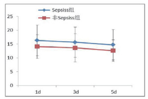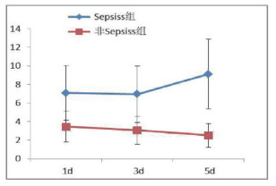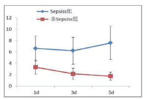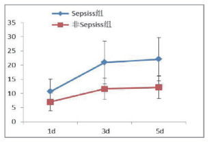 图 4 Sepsis组和非Sepsis组PCT动态比较 |