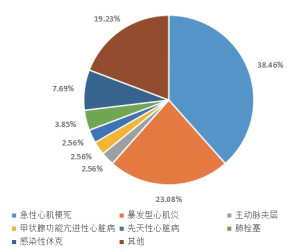 | 急性心肌梗死 | 30(38.46) | 6(26.09) | 24(43.64) | ||