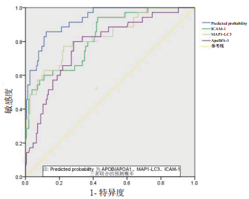 | 注: Predicted probability为Apo B/A1、MAP1-LC3和ICAM-1三者联合的预测概率 | |||||