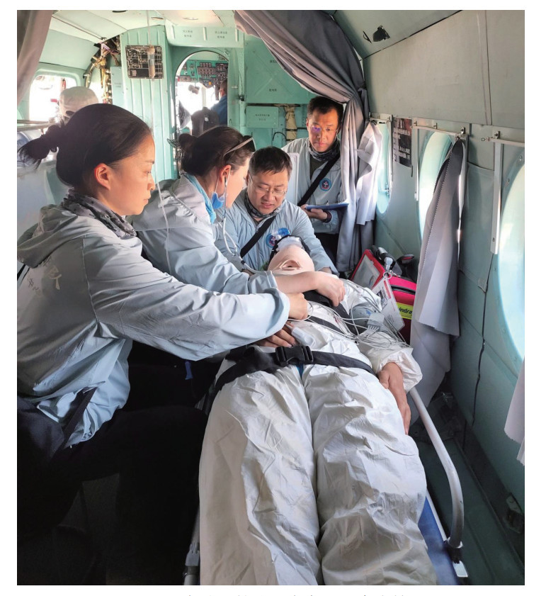 图 1 直升机救护平台高级生命支持 Fig 1 Formation of helicopter rescue platform and exercise advance life support |