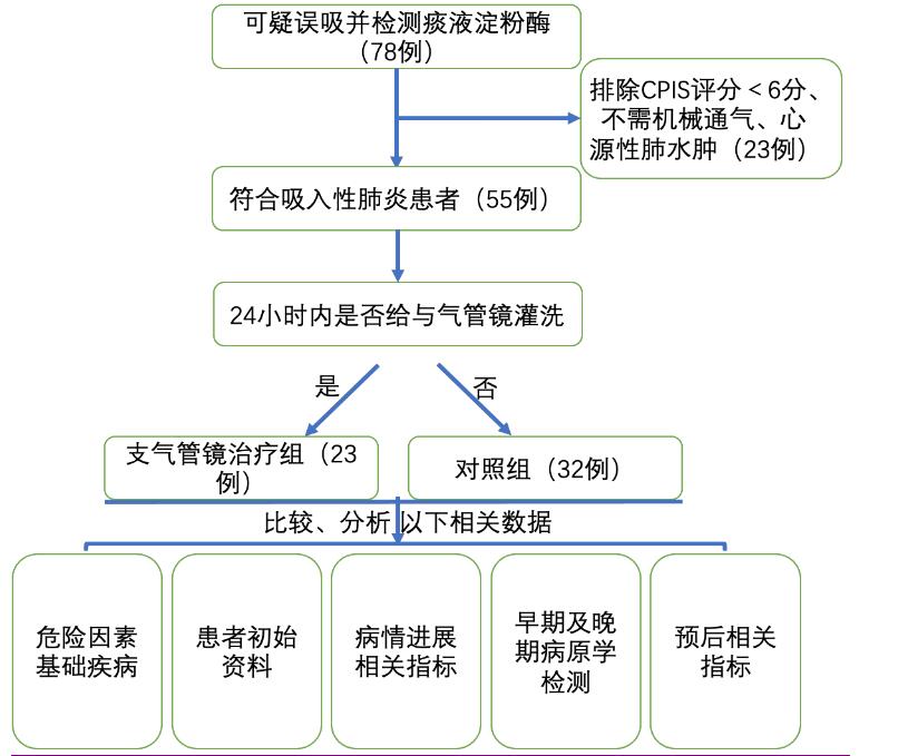 图 1 吸入性肺炎纳入流程及分组 Fig 1 Flow chart of enrollment and grouping of aspiration pneumonia |