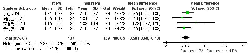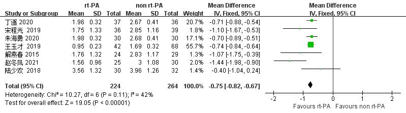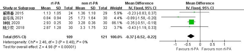| 纳入研究 | 病程 | rt-PA | no rt-PA(分) | NIHSS | 结局指标 | |||