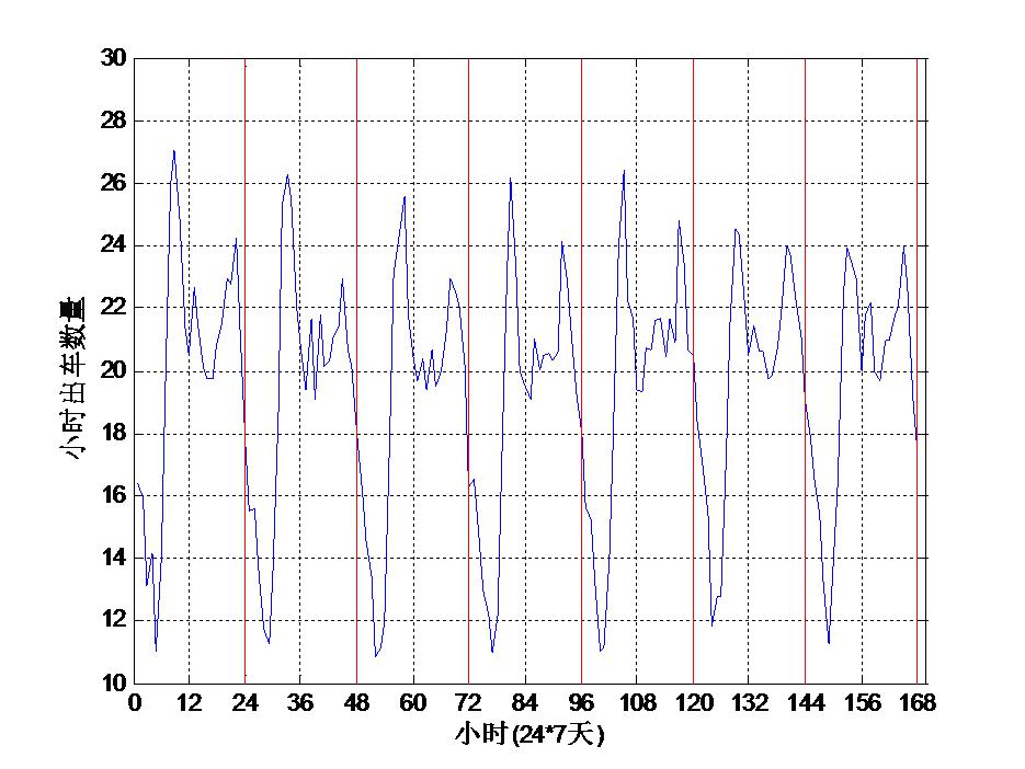 | 图 1 1周内每个小时平均出车数量 Fig 1 Average number of hourly departure records in one week |