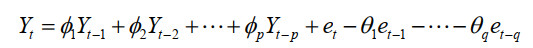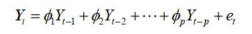 式中,p为AR模型的阶数,Yt是时间序列在t时刻的观测值。et表示模型误差。