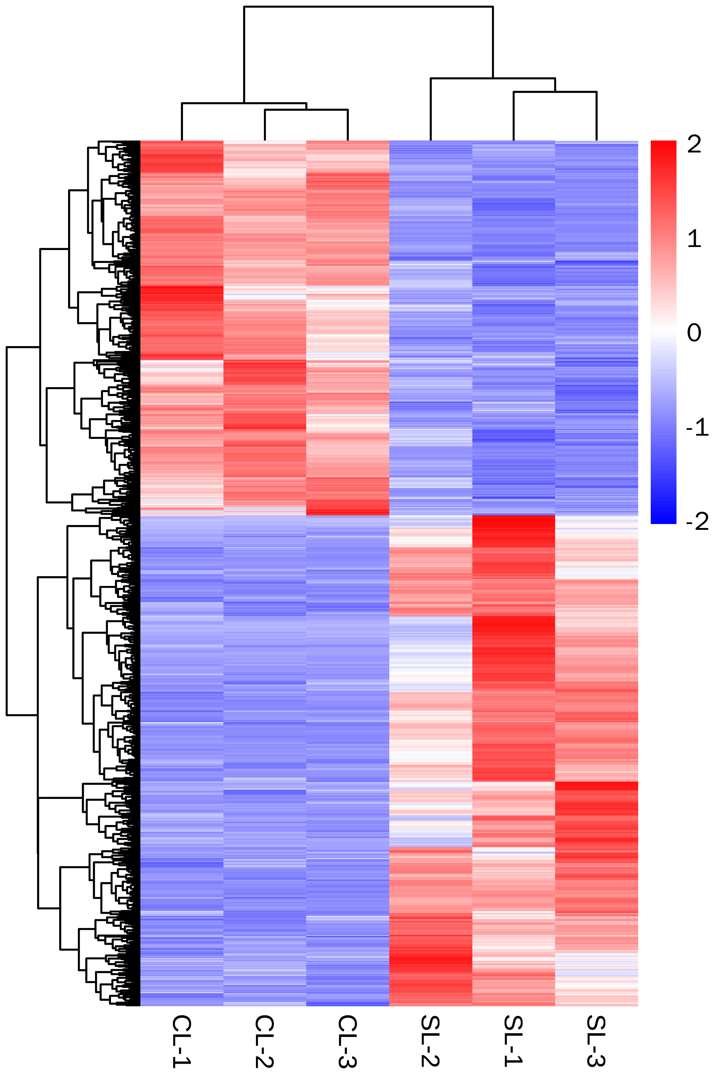 1.8 数据生物信息学分析(1)Small RNA测序数据的生物信息学分析:①测序所得的数据进行质控(QC),合并重复序列、数据过滤、筛选miRNA中的Known miRNA;②对Known miRNA进行差异分析,聚类分析、靶基因预测。(2)RNA-seq测序数据分析:数据质控,差异表达基因分析。(3)将SL vs CL与XL vs SL的差异miRNA取交集,找到表达方向相反的差异miRNA,得出犀角地黄汤可能作用的miRNA。并根据miRNA靶向mRNA与RNA-seq结果的差异基因取交集,得出犀角地黄汤可能作用的mRNA。