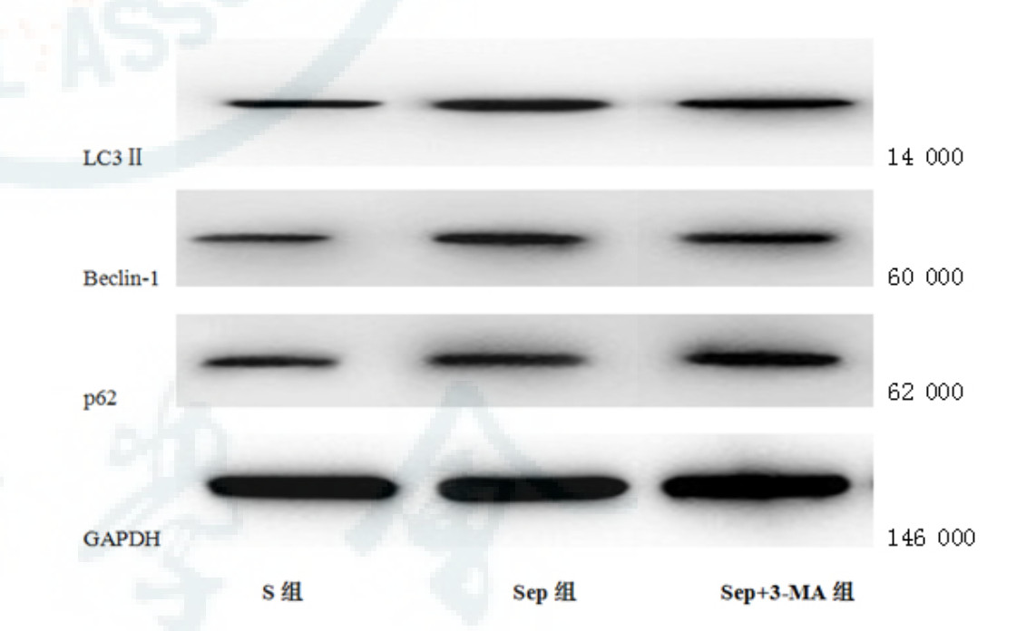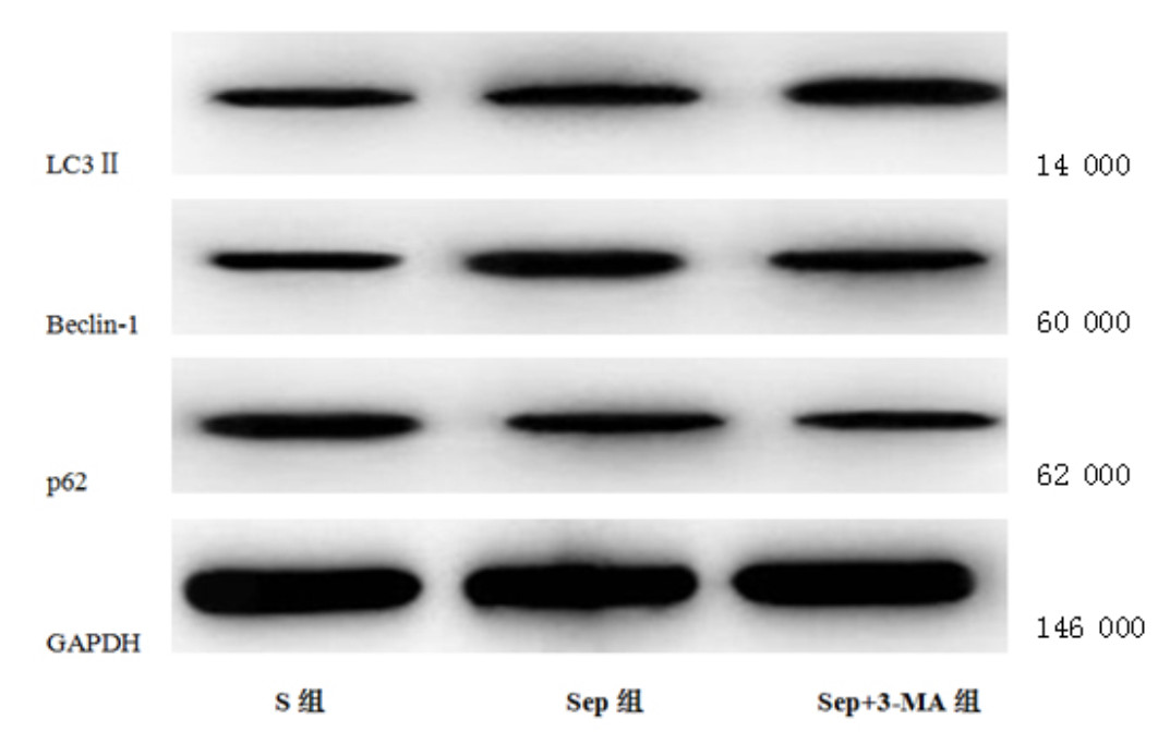 | Sep+3-MA组 | 1.32±0.14 | 1.47±0.13 | 1.45±0.16 | 1.44±0.14 |