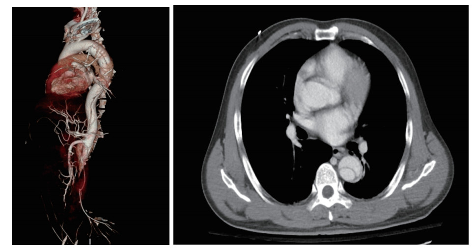 钝性创伤性主动脉损伤(blunt thoracic aortic injury,BTAI)是一种由于快速减速损伤导致的严重血管损伤,80%左右的钝性创伤性主动脉损伤患者在被运送至医疗救治单位/ 创伤中心前就因大量失血而导致丧失抢救机会;而可以成功被运送至到医院的这一部分患者会因夹层导致的各种并发症或者并发的其他致命性创伤,大约会在24~48 h内死亡。而真正生存下来的患者往往也会有多发伤,包括心脏损伤、肋骨骨折、血胸和腹腔脏器损伤,救治的成功率也极低。创伤后主动脉夹层不常见,但是单纯损伤合并下肢缺血横纹肌溶解及顽固性高钾血症报道甚少[1-2]。现将本院收治的一名创伤性主动脉夹层伴下肢横纹肌溶解及顽固性高钾血症病例进行总结及分析。伦理批件号:(2002)论审研第(0276)号。
