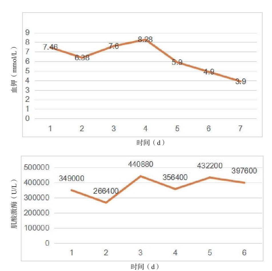 | 图 2 患者血钾及肌酸激酶变化 |