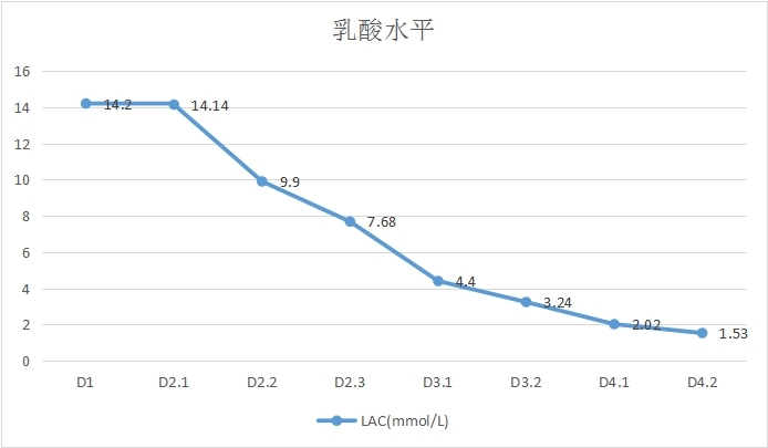 | 图 1 治疗期间乳酸水平变化趋势图 |