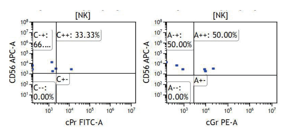 | 图 4 治疗后NK细胞活性颗粒酶、穿孔素表达率 |