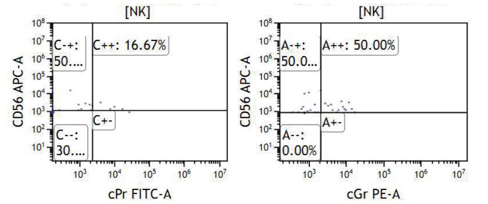 | 图 2 治疗前NK细胞活性和颗粒酶、穿孔素表达率 |