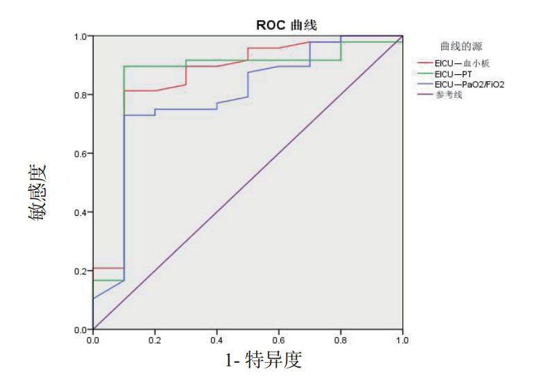 | EICU-血小板(×109/L) | 0.851(0.697~1.000) | 0.001 | 61.00 | 0.900 | 0.896 | 0.796 |