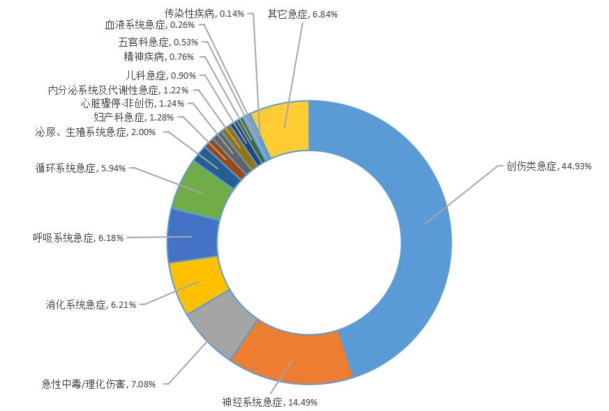 图 1 浙江省院前急救常见疾病分布 |