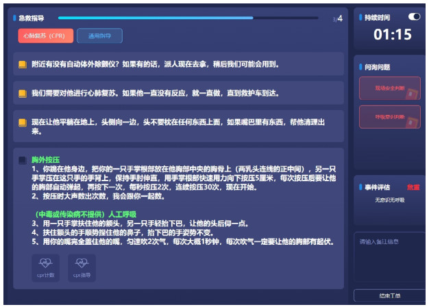 2022年6月23日ADLS在北京正式上线,主要用于支持120急救中心在急救服务过程中,为现场的呼救者提供急救人员到达前必要的自救或互救科学的急救措施指导,尤其是涉及到CPR(包括AED使用)、海姆立克等重要急救措施,第一时间提供急救技术指导。ADLS已拥有多项发明专利,将智能技术融入到软件的开发应用,支持PC端和PAD端的多终端应用,拥有电话音频和视频沟通,图文发送等多信息交互形式,是完全中国自主研发的院前急救指导系统。ADLS的正式上线,意味着我国OHCA急救电话指导有了自己的指导方案,填补了国内院前急救领域的空白,解决了长期以来依赖美国MPDS的问题,弥补了院前急救过程中从拨打120至急救人员到达现场期间无人救的“空窗期”,而且保证了数据安全和个人隐私,节约成本,操作也更符合习惯,实现视频指导,有效提升我国OHCA的救治水平[19]。