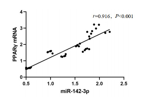 | 图 2 脾脏中miR-142-3p与PPARγ mRNA的相关性 |