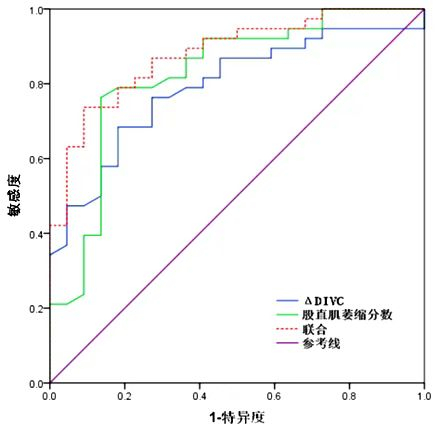 本研究的局限性:本研究样本量较小,同时,超声测量ΔDIVC和股直肌横截面积精确性需进一步提升,后期可进一步扩大研究样本数量,优化实验设计和数据采集,提高ΔDIVC联合股直肌萎缩分数预测撤机成功的准确性。