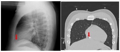 综上所述,本文报道了1例心脏异物中的罕见病例。当观察到心脏异物时,只有当异物小、固定、远离重要结构和无症状时,才能予以临床和放射学随访。当怀疑有任何危险情况,必须与心胸外科医生讨论是否手术去除。