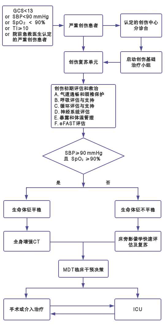 | 图 2 苏州大学附属第二医院严重创伤救治流程 |